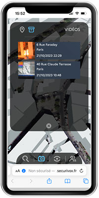 par le contrôle direct du flux vidéo de la caméra, géolocalisée (GPS et IP), horodatée, cryptée, Sécurvox permet de collecter automatiquement une vidéo qualifiant une situation d’urgence.